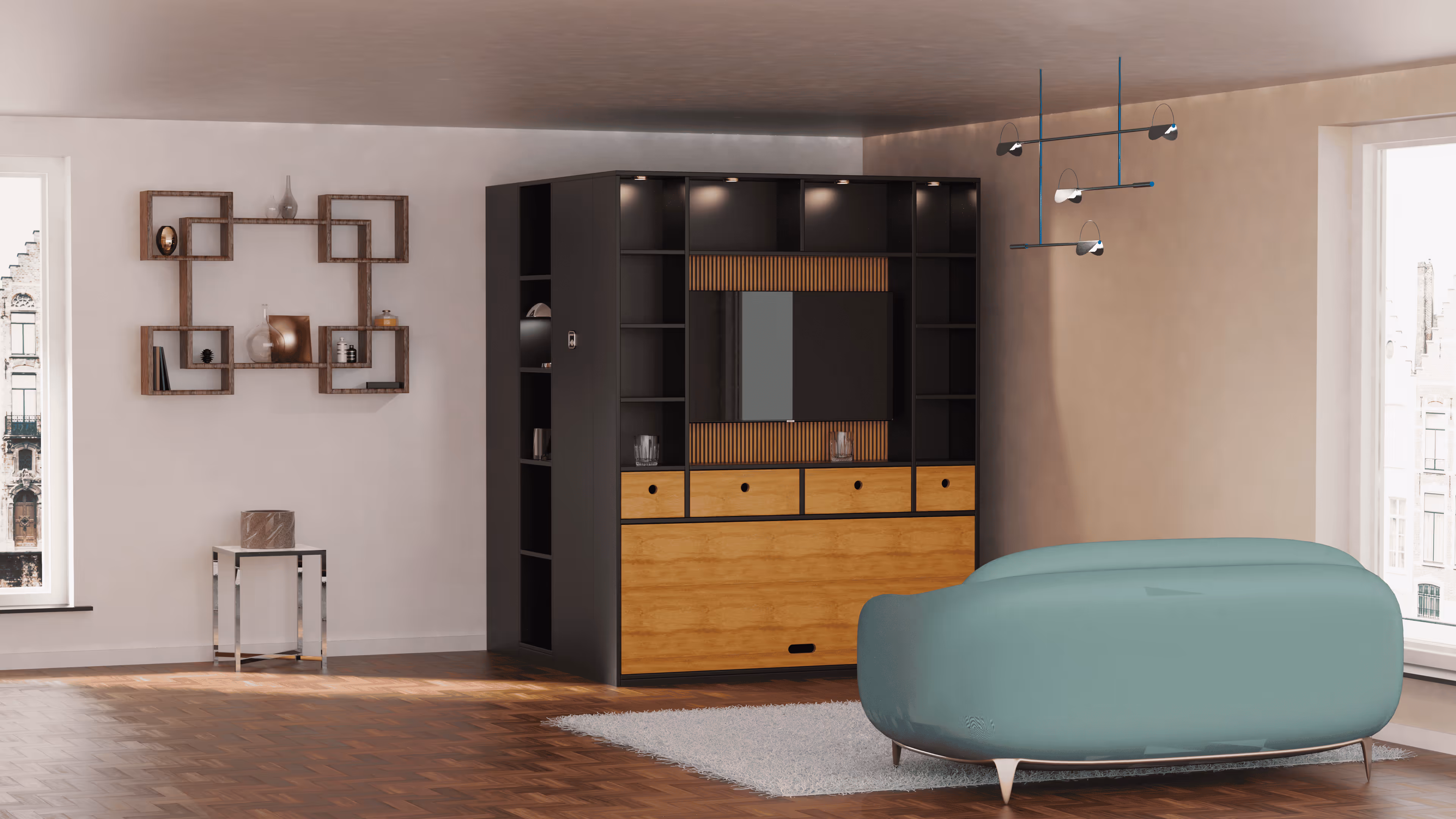Wij creëren modulaire, ruimtebesparende meubels die uw woning flexibel transformeren, van slaapkamer tot leefruimte en meer.