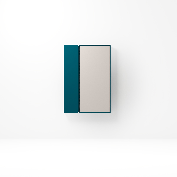 Wall-mounted transforming system with vertical single murphy bed with additional storage.